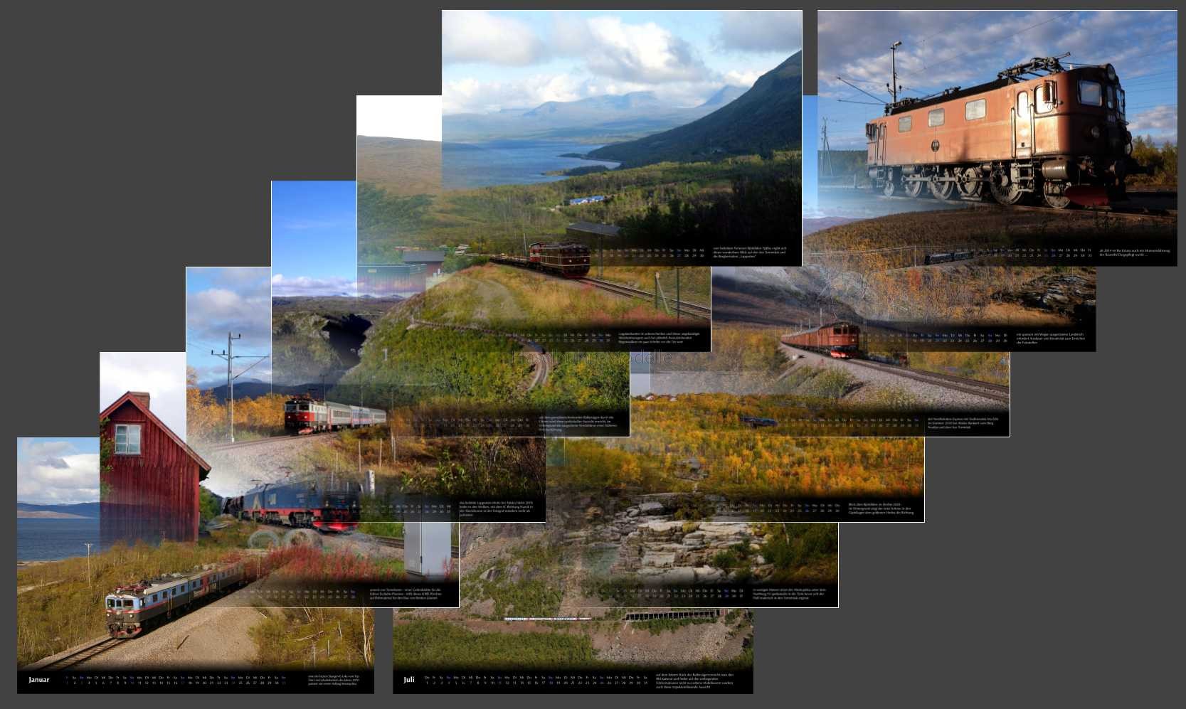 Eisenbahn-Kalender für das Jahr 2021 mit 12 Farbaufnahmen aus den Jahren 2010 bis 2020, entstanden bei der Bereisung Lapplands und auf Wanderschaft zwischen Kiruna in Schweden und Narvik in Norwegen entlang der Ofotenbahn,