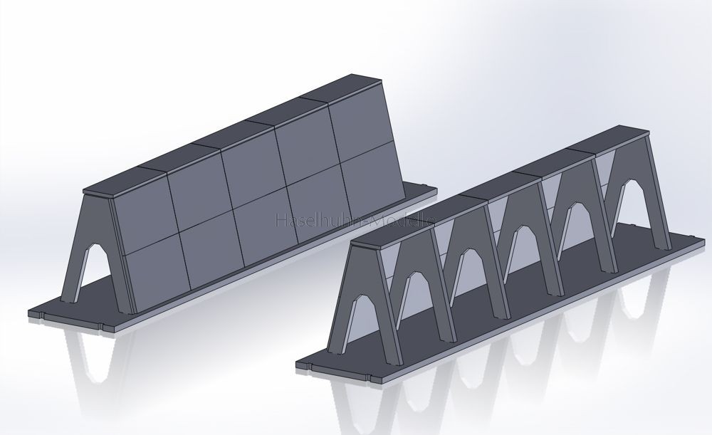 mit den gleichen Bausätzen über Aussparungen in den Grundplatten.Die Bildung zusätzlicher Silo-Mulden nebeneinander erfordert eine leicht abgespeckte Variante